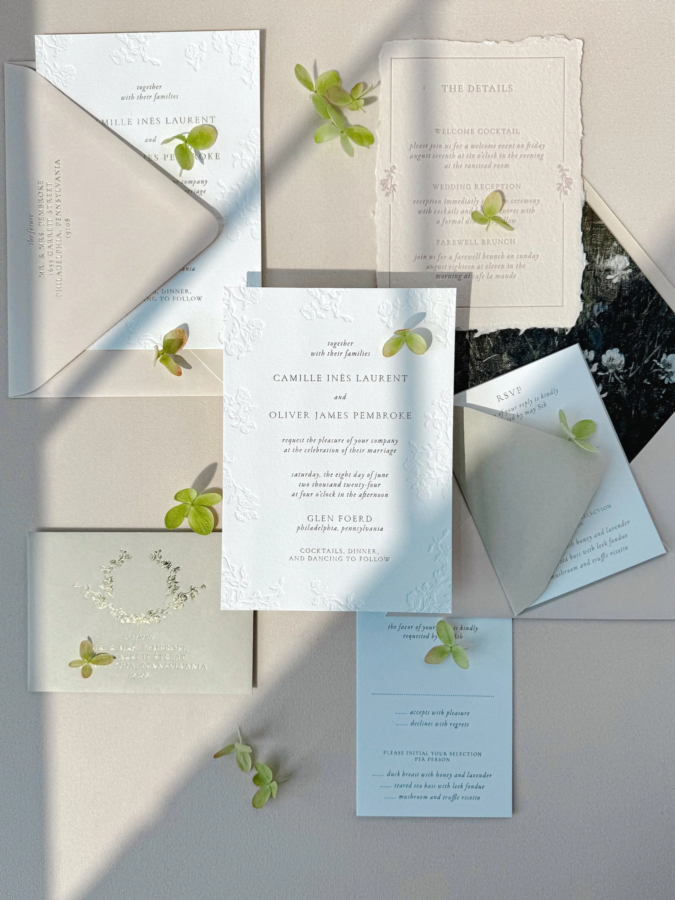 Order a sample of The Giverny suite to experience the design, paper, and printing quality in person. While the samples are not customizable, you can select your preferred printing method and paper type.